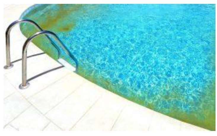 湿気が多いプールサイドでは藻(藻類)が繁殖しがち…。