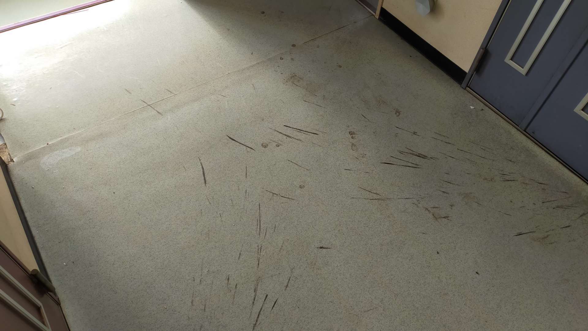 床剥離清掃では、長年の使用によって蓄積した汚れやくすみをしっかり除去し、床本来の明るさと清潔感を回復させています。定期的な床清掃を行うことで、見た目がきれいになるだけでなく、施設全体の印象アップにもつながります😊